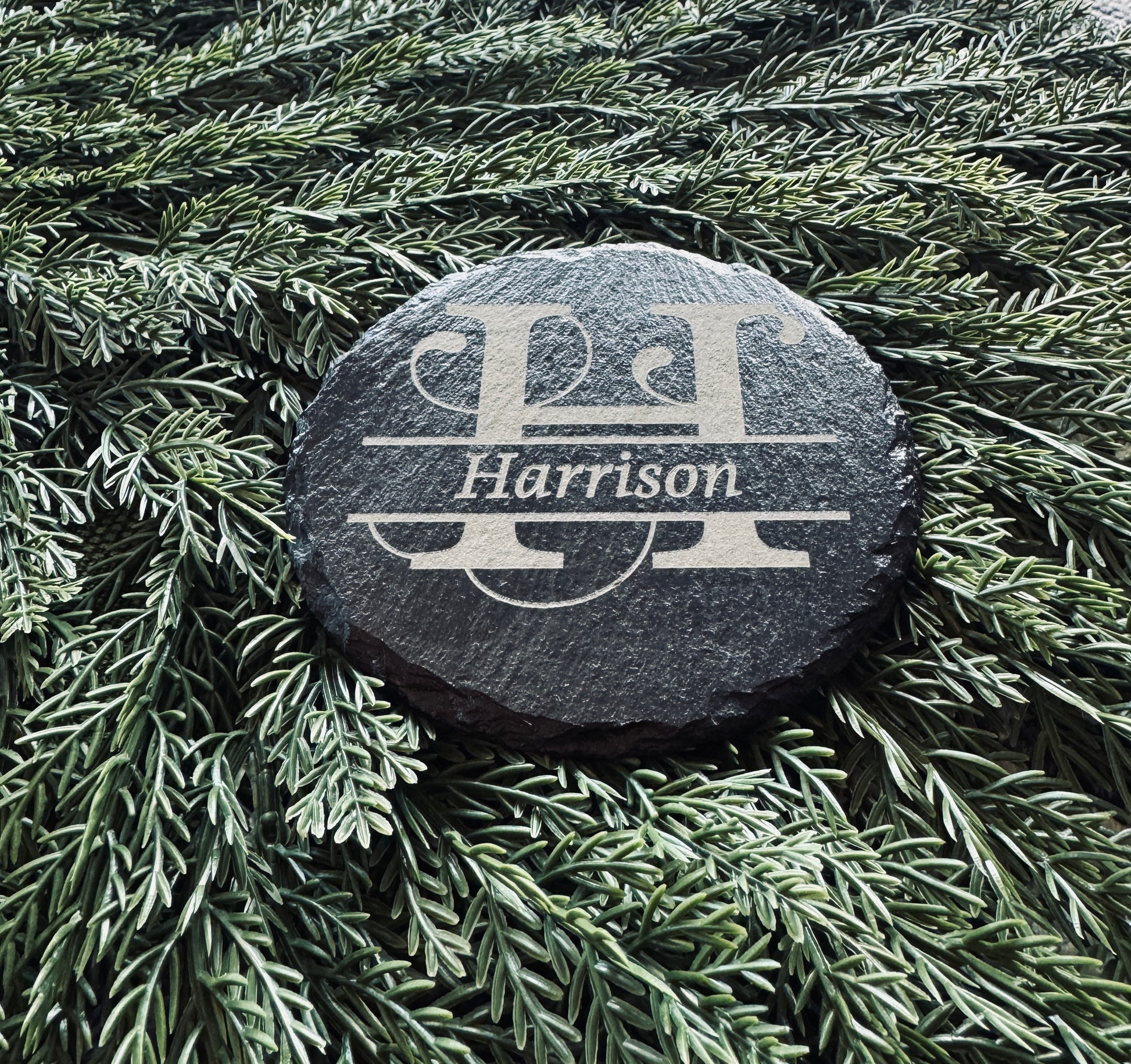 Pack of four (4) square or four (4) round slate coaster set. Please select one of the styles listed and request that in the provided text box under the description.